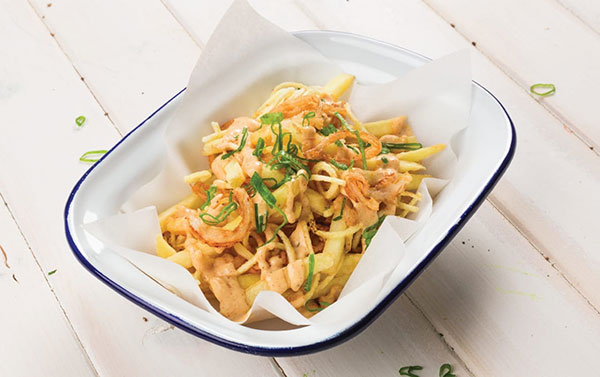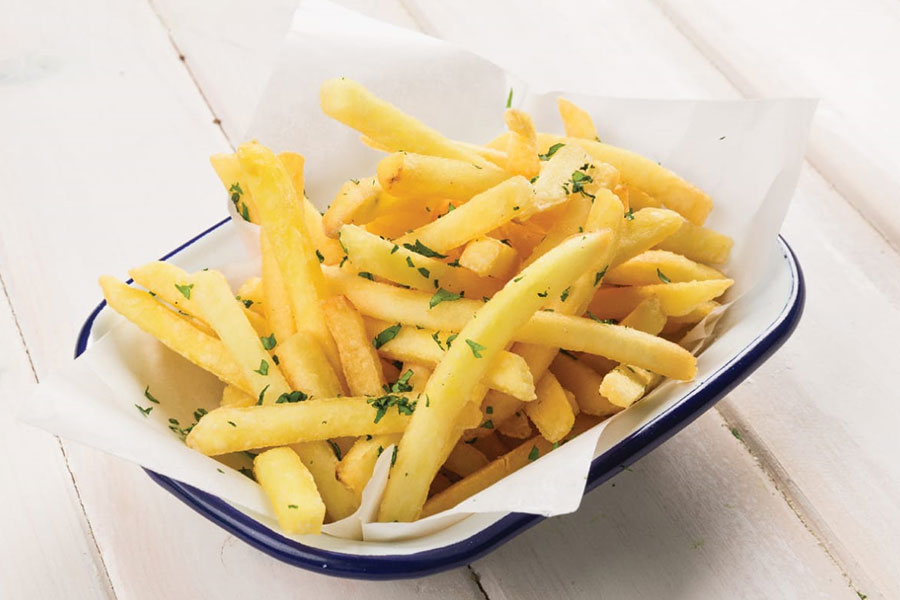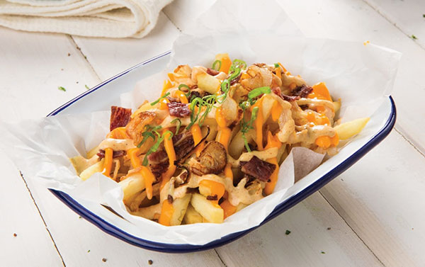 | Potatos, Potatos Fries, Crunchy Onion, County Sauce |