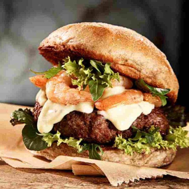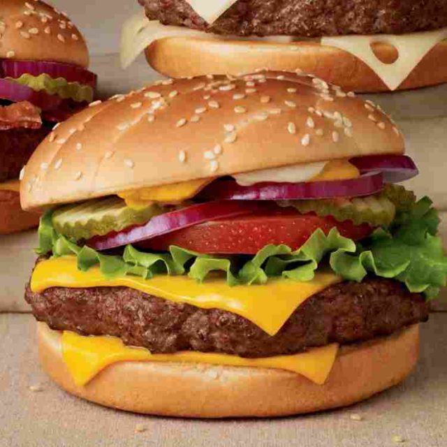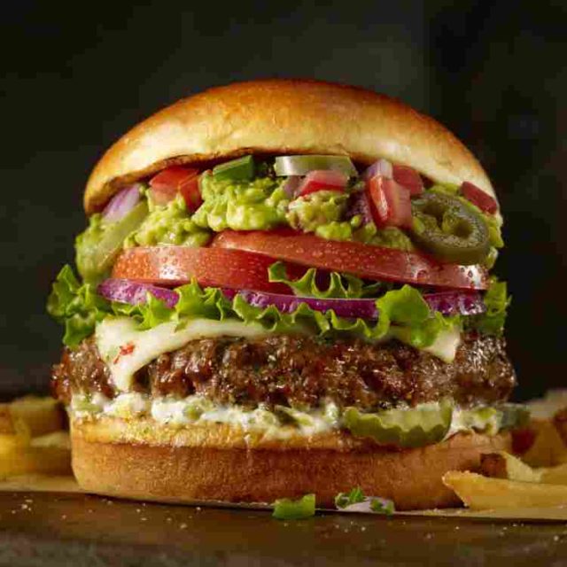 | قطعة لحم أمريكي , جبن , خس , بصل مكرمل , البصل المقرمش , كاونتي صوص الخاص |