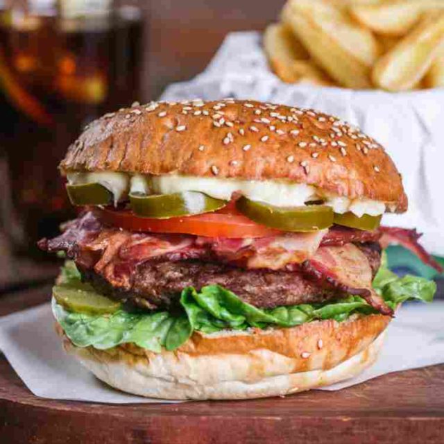 | قطعتان من صدر الدجاج المشوي , جبن , خس , طماطم , شريحة البيكون الامريكية , مايونيز |